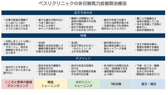 当院では、ご相談いただいた方の状態とライフスタイルから、心・脳・身体のアプローチで休日無気力症候群の治療をご案内しています。